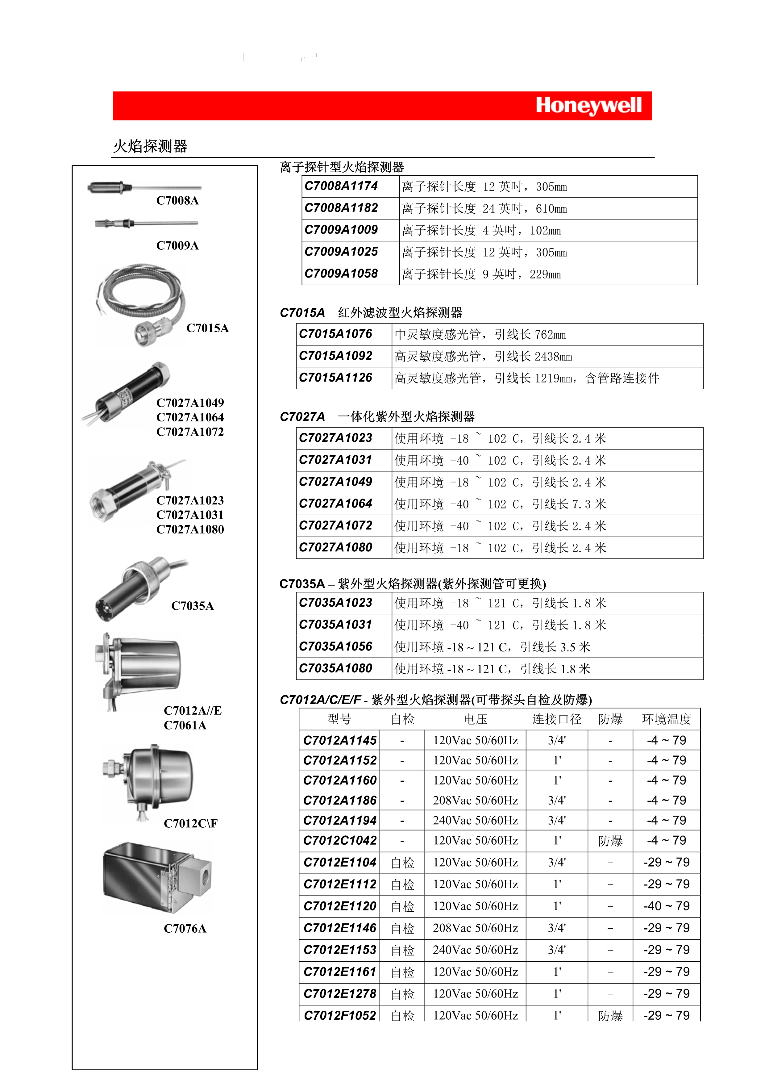 霍尼韋爾C7027A1023火焰探測器